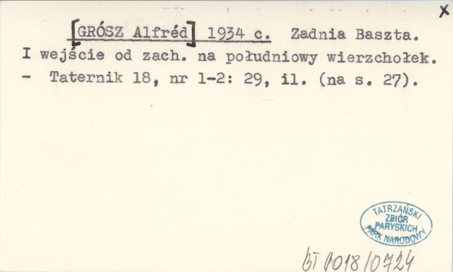 [GRÓSZ Alfréd] 1934 c Zadnia Baszta. I wejście od zach. na południowy wierzchołek.