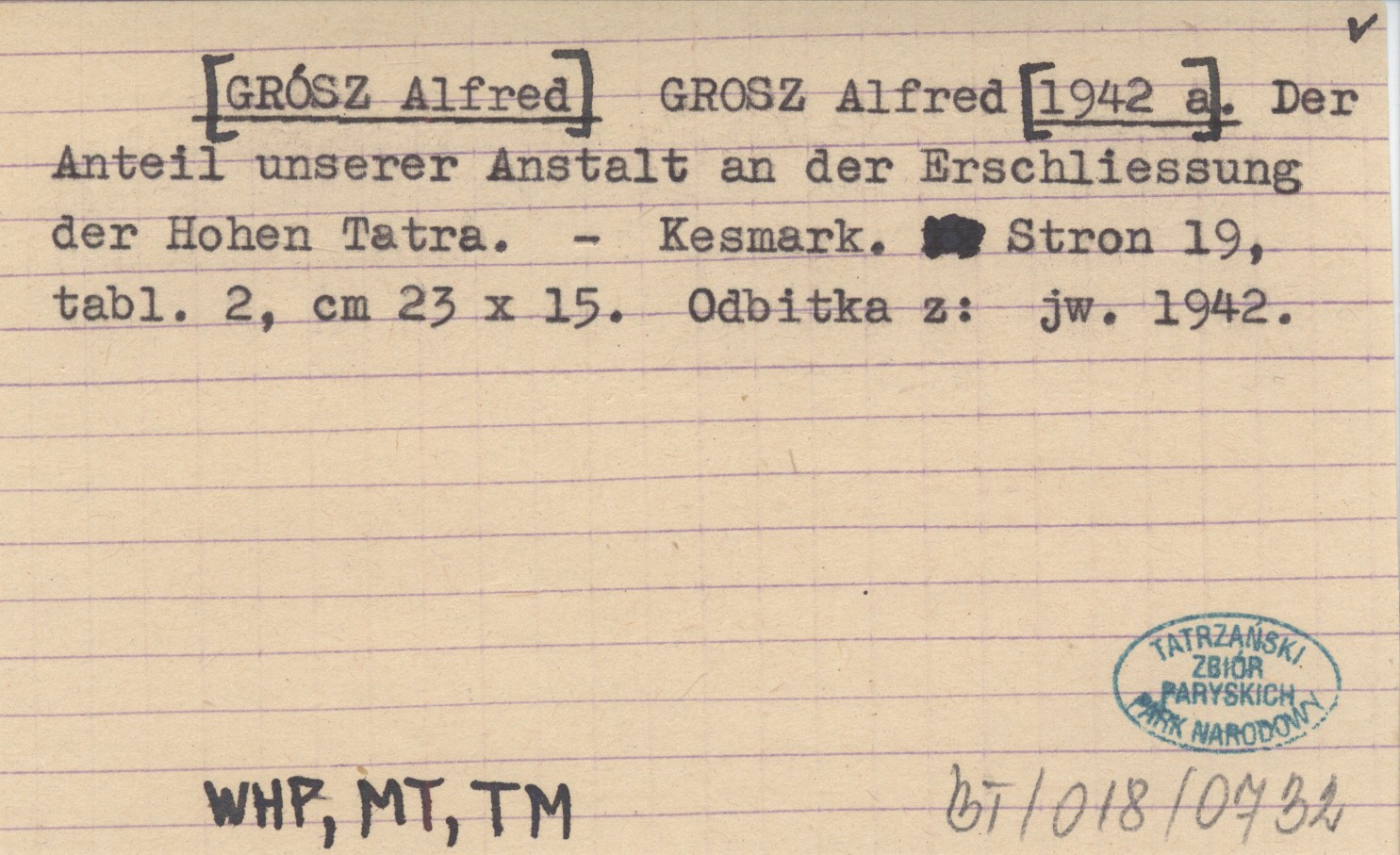 GROSZ Alfred [GRÓSZ Alfred] [1942 a] Der Anteil unserer Anstalt an der Erschliessung der Hohen Tatra.