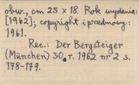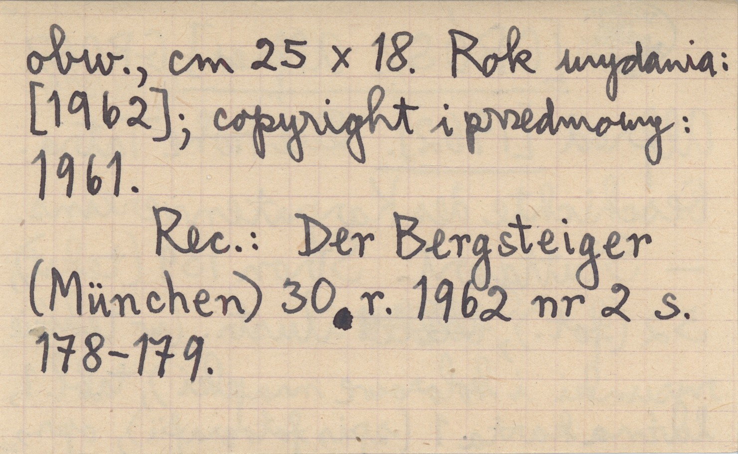 Stuttgart , 139 s. (tekst), 52 (fot.), il., 1 k. tabl., 1 luźna karta, opr., obw., 25x18 cm. (w tekście rysunki i kolorowe mapki) (spis fotografii) Rok wydania: [1962]; copyright i przedmowy: 1961. REC: Der Bergsteiger (München) 30 r. 1962 nr 2: 178-179
