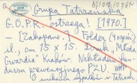 Grupa Tatrzańska G.O.P.R. ostrzega! [1970]