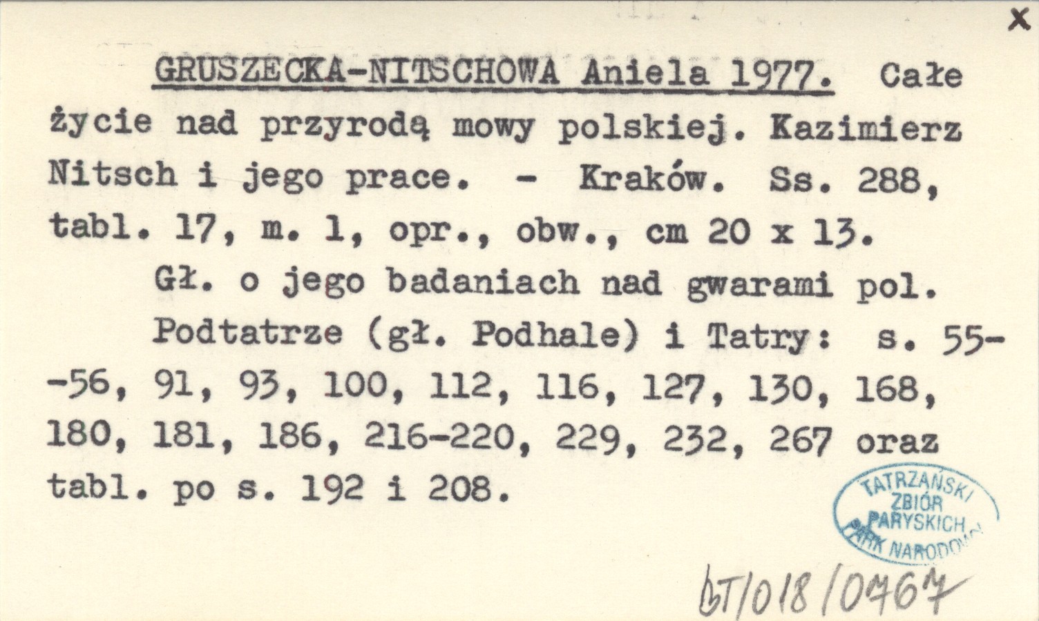 GRUSZECKA-NITSCHOWA Aniela 1977 Całe życie nad przyrodą mowy polskiej. Kazimierz Nitsch i jego prace.