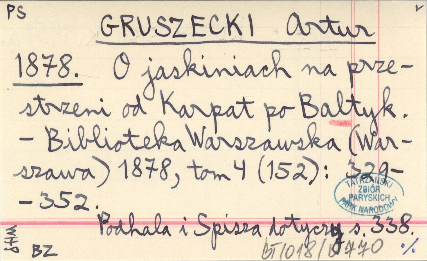 GRUSZECKI Artur 1878 O jaskiniach na przestrzeni od Karpat po Baltyk.