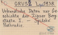GRUSZ Leopold 1938 Urkundliche Daten zur Geschichte der Zipser Bergstädte. I.