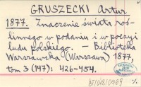 GRUSZECKI Artur 1877 Znaczenie świata roślinnego w podaniu i w poezyi ludu polskiego.