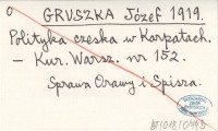 GRUSZKA Józef 1919 Polityka czeska w Karpatach.