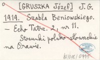 J. G. [GRUSZKA Józef] 1919 Szabla Beniowskiego.