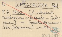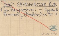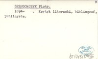 GRZEGORCZYK Piotr 1962 Z materiałów bio- i bibliograficznych dotyczących pisarzy zmarłych w 1962 roku.
