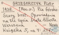 GRZEGORCZYK Piotr 1938 Pia Górska: Szary brat. Opowiadania na tle życia brata Alberta. Warszawa.