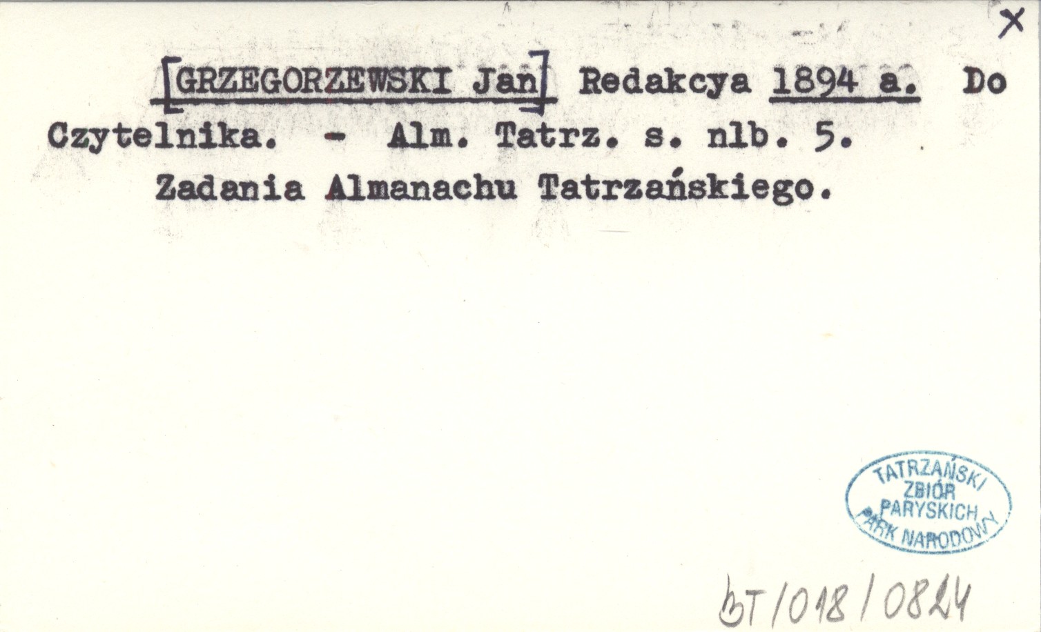 Redakcya [GRZEGORZEWSKI Jan] 1894 a Do Czytelnika.
