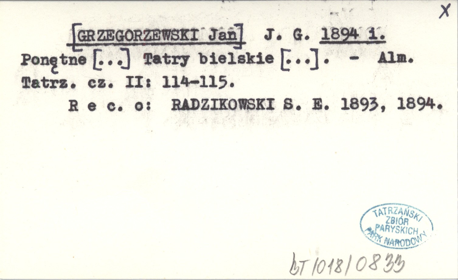 Almanach Tatrzański, Cz. II: 114-115. REC: RADZIKOWSKI S. E. 1893, 1894