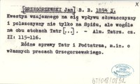 B. B. [GRZEGORZEWSKI Jan] 1894 j Kwestya wzajemnego na się wpływu słowacczyzny i polszczyzny nie tylko na Spiżu, ale wogóle na obu stokach Tatr [...].