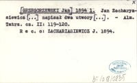 [GRZEGORZEWSKI Jan] 1894 l Jan Zacharyasiewicz [...] napisał dwa utwory [...].