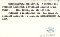 [GRZEGORZEWSKI Jan] 1894 aa Kronika miejscowa.