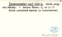 [GRZEGORZEWSKI Jan] 1894 y Złota przędza Sabały.