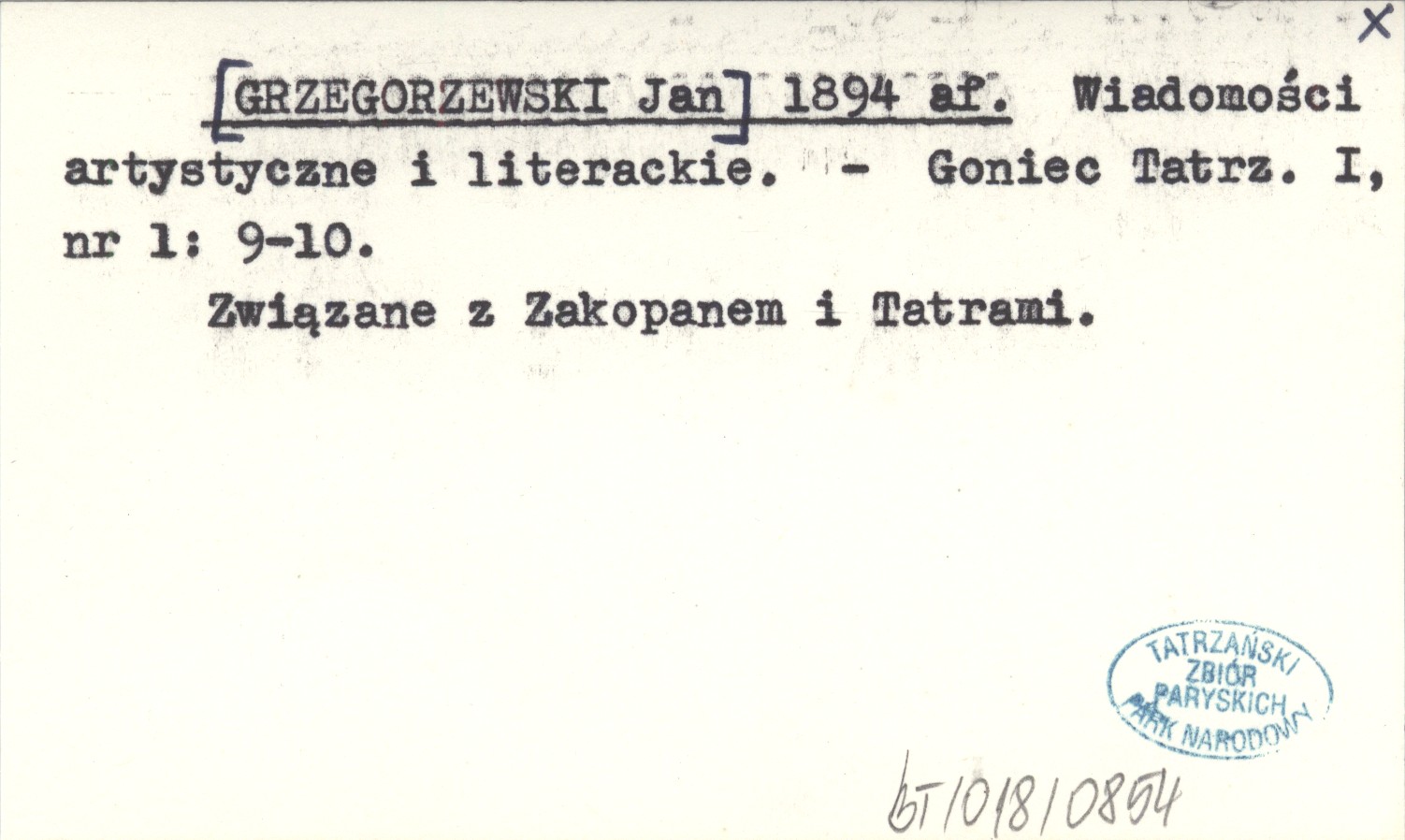 [GRZEGORZEWSKI Jan] 1894 af Wiadomości artystyczne i literackie.