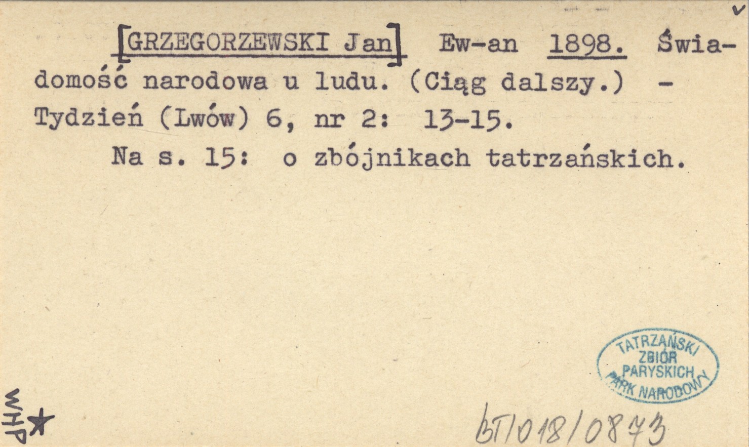 Tydzień (Lwów) , 6, nr 2: 13-15. Na s. 15: o zbójnikach tatrzańskich.