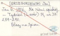 Jan G. [GRZEGORZEWSKI Jan] 1906 Na ziemi spiskiej.