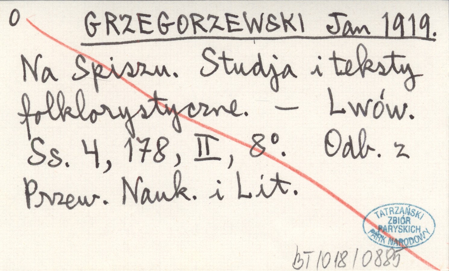 GRZEGORZEWSKI Jan 1919 Na Spiszu. Studja i teksty folklorystyczne.