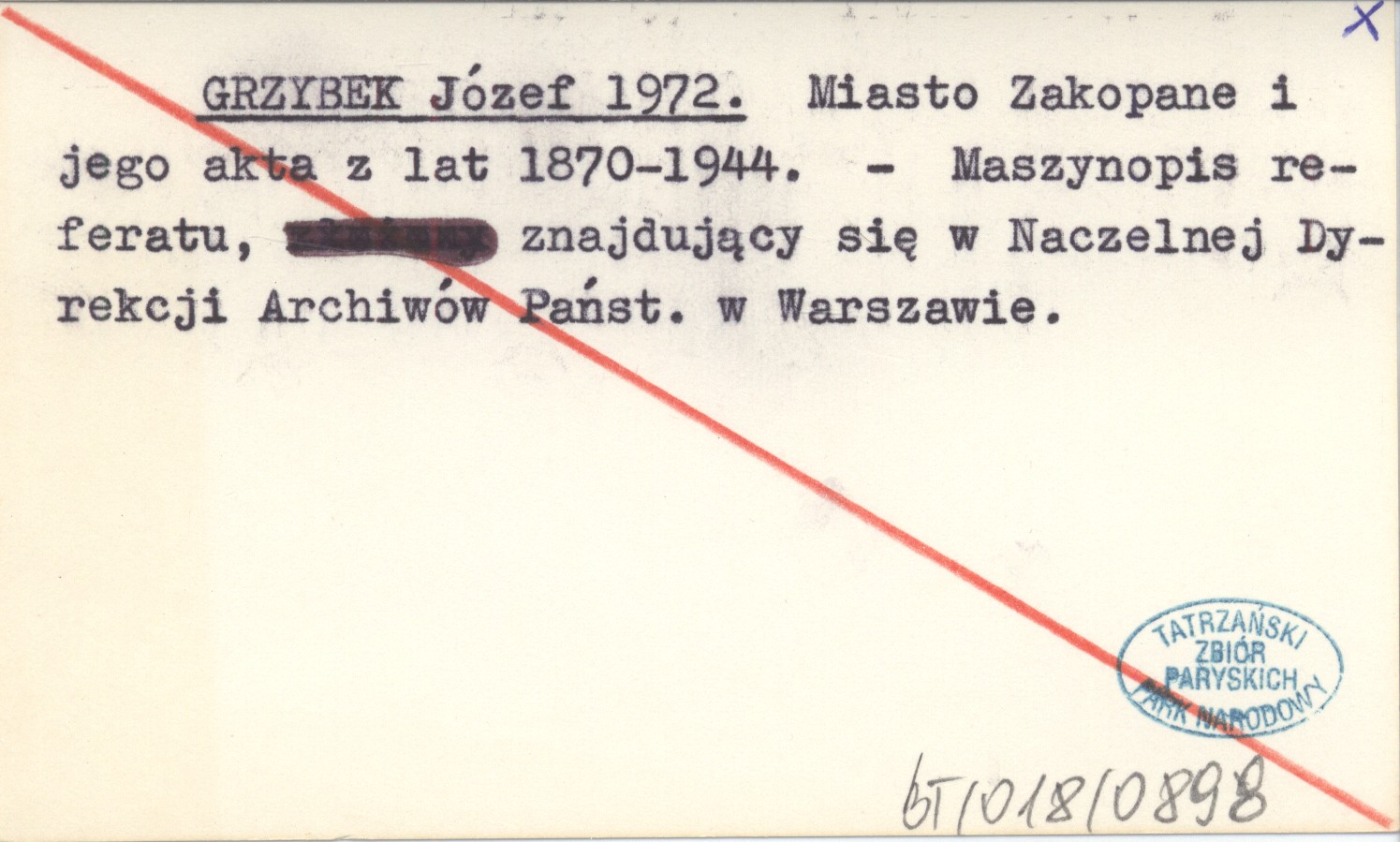 GRZYBEK Józef 1972 Miasto Zakopane i jego akta z lat 1870-1944.