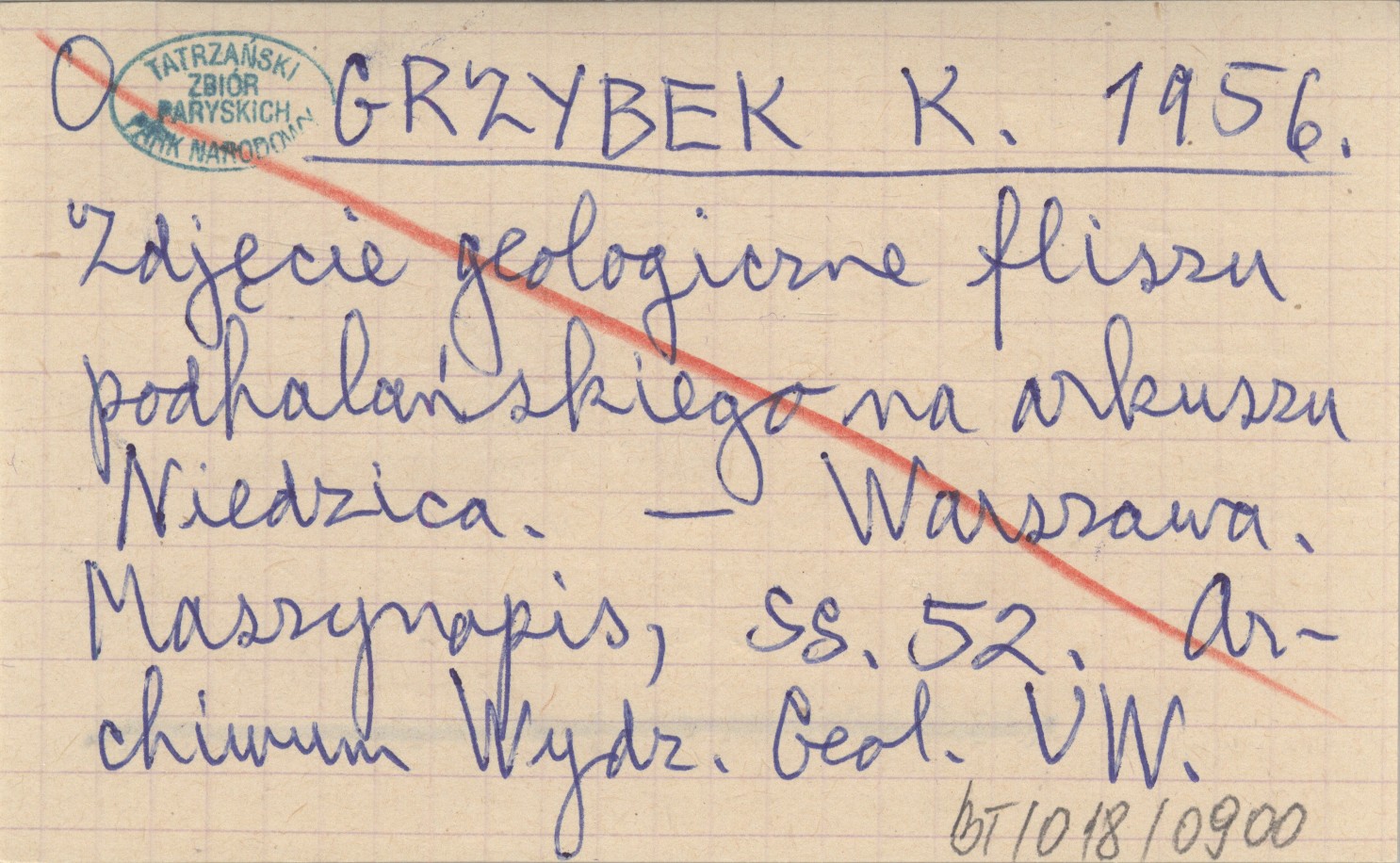 GRZYBEK K. 1956 Zdjęcie geologiczne fliszu podhalańskiego na arkuszu Niedzica.