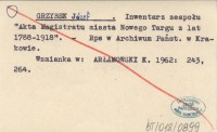 GRZYBEK Józef 1972 Miasto Zakopane i jego akta z lat 1870-1944.