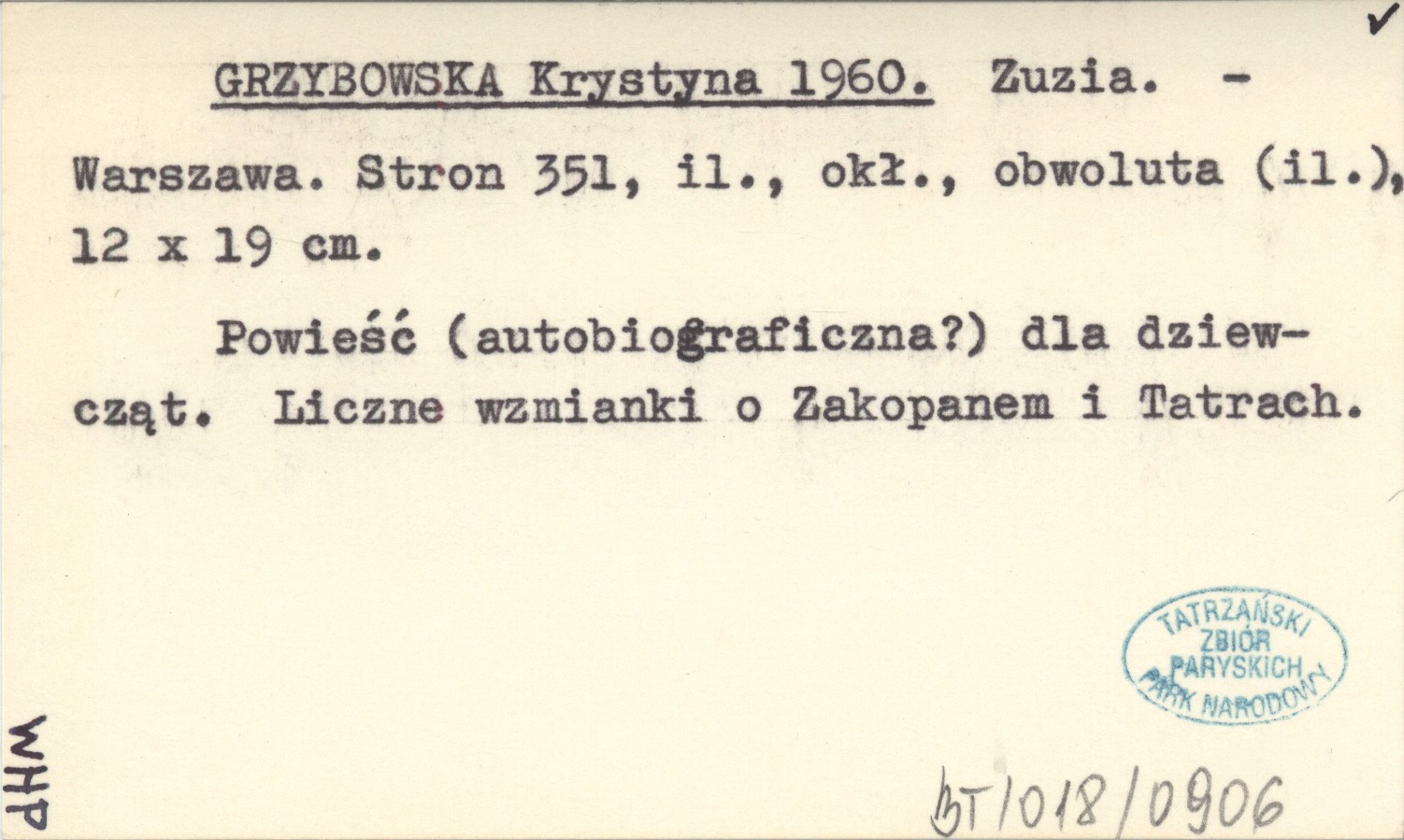 Warszawa , 351 s., il., okł., obw. (il.), 12x19 cm. Powieść (autobiograficzna?) dla dziewcząt. Liczne wzmianki o Zakopanem i Tatrach.
