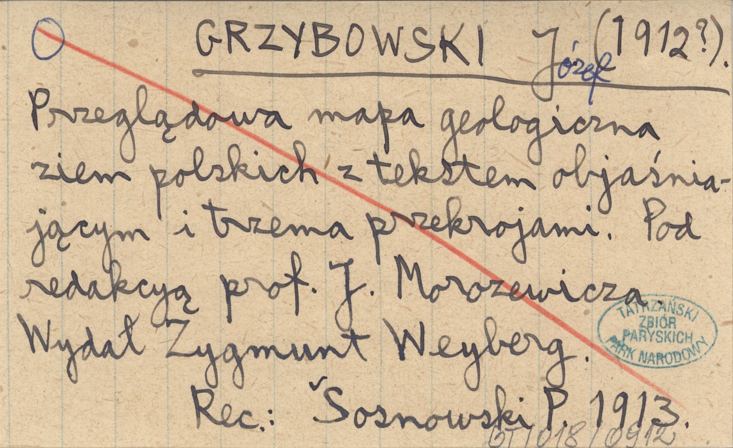 GRZYBOWSKI Józef 1912? Przeglądowa mapa geologiczna ziem polskich z tekstem objaśniającym i trzema przekrojami. Pod redakcyą prof. J. Morozewicza.
