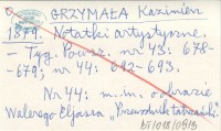 GRZYMAŁA Kazimierz 1879 Notatki artystyczne.