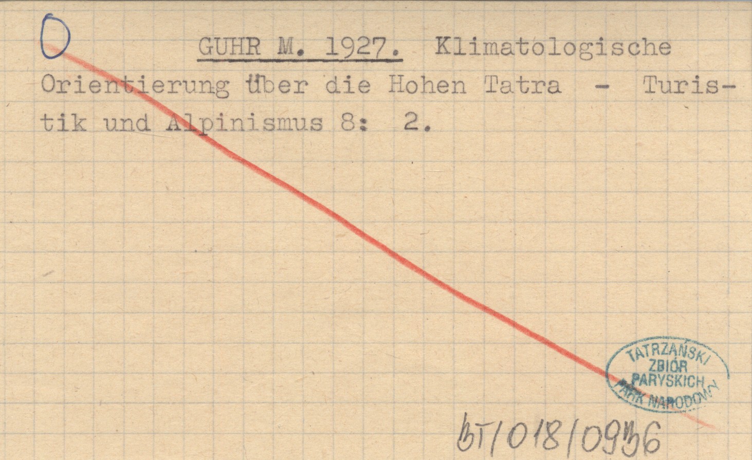 GUHR M. 1927 Klimatologische Orientierung über die Hohen Tatra.