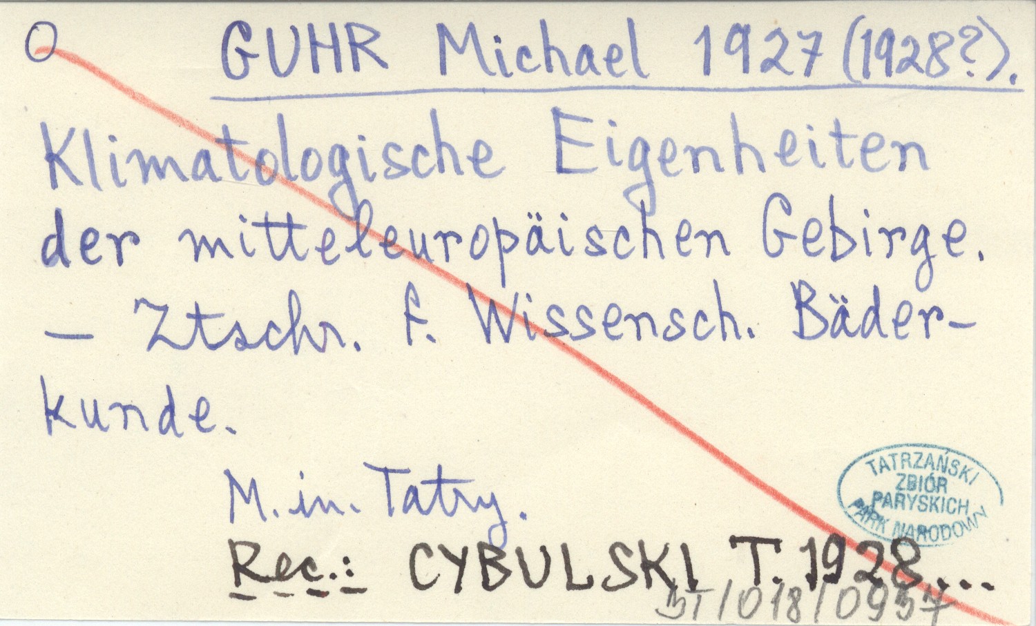 GUHR Michael 1927 (1928?) Klimatologische Eigenheiten der mitteleuropäischen Gebirge.