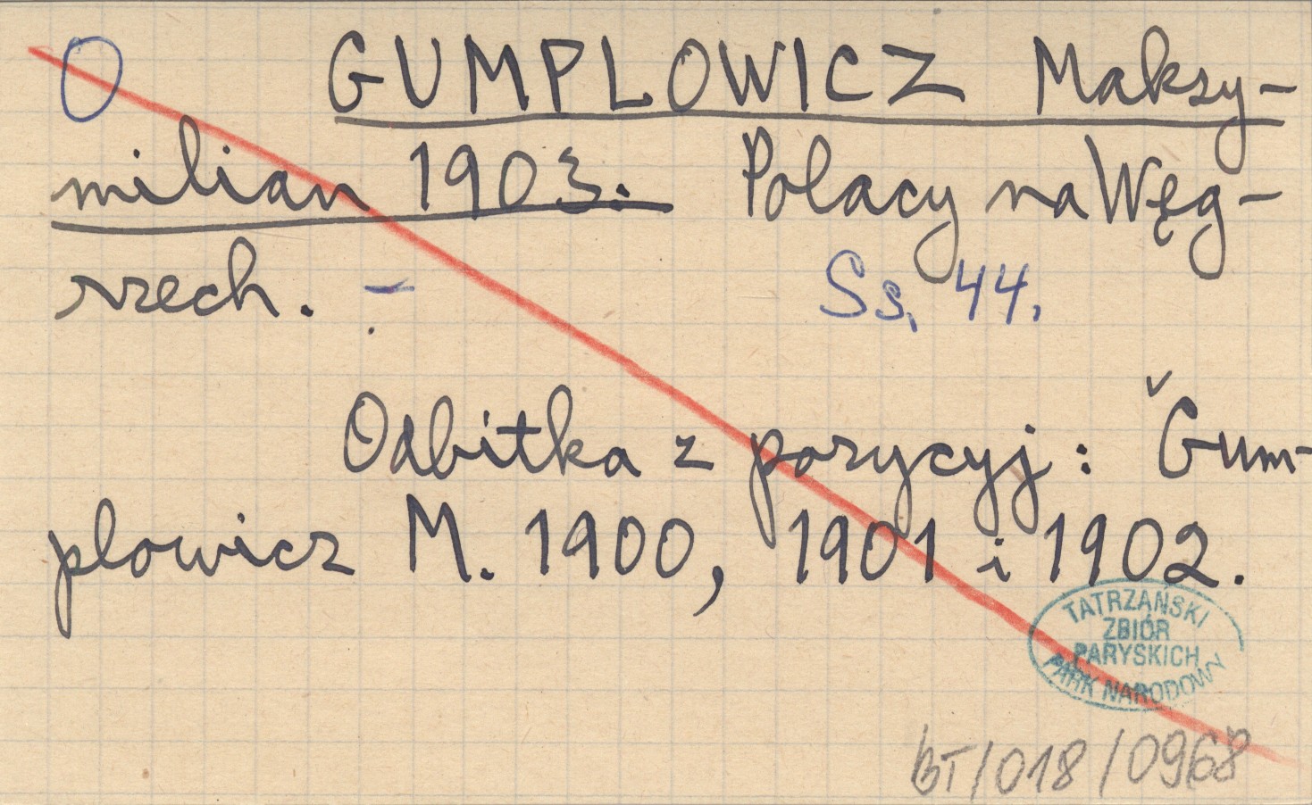 , 44 s. Odbitka z pozycyj: Gumplowicz M. 1900, 1901 i 1902.