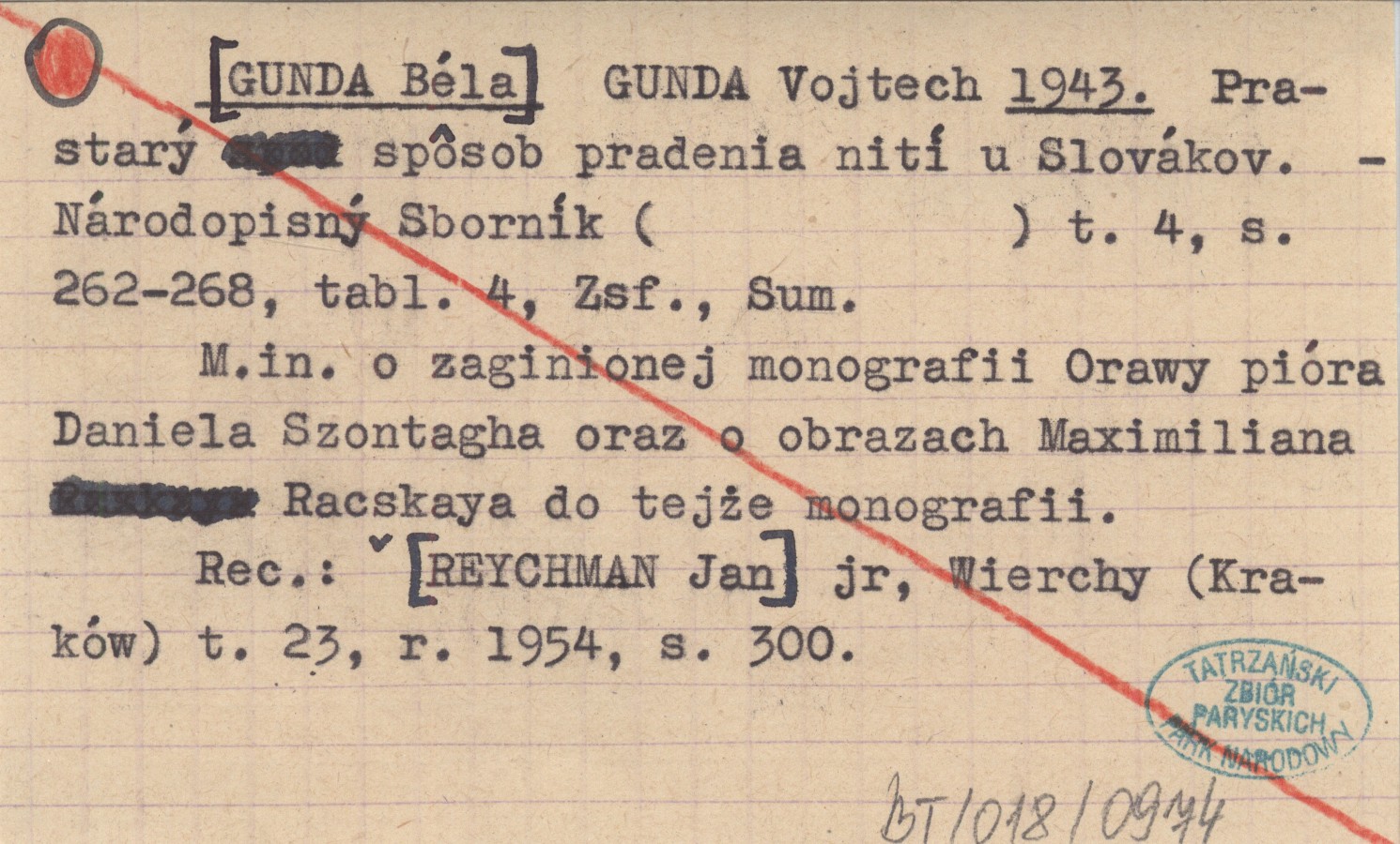 Národopisný Sborník, T. 4: 262-268, 4 k. tabl., Zsf., Sum. M.in. o zaginionej monografii Orawy pióra Daniela Szontagha oraz o obrazach Maximiliana Racskaya do tejże monografii. REC: [REYCHMAN Jan] jr, Wierchy (Kraków) t. 23, r. 1954, s. 300