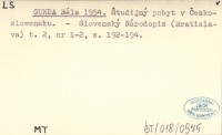 GUNDA Béla 1954 Študijný pobyt v Československu.