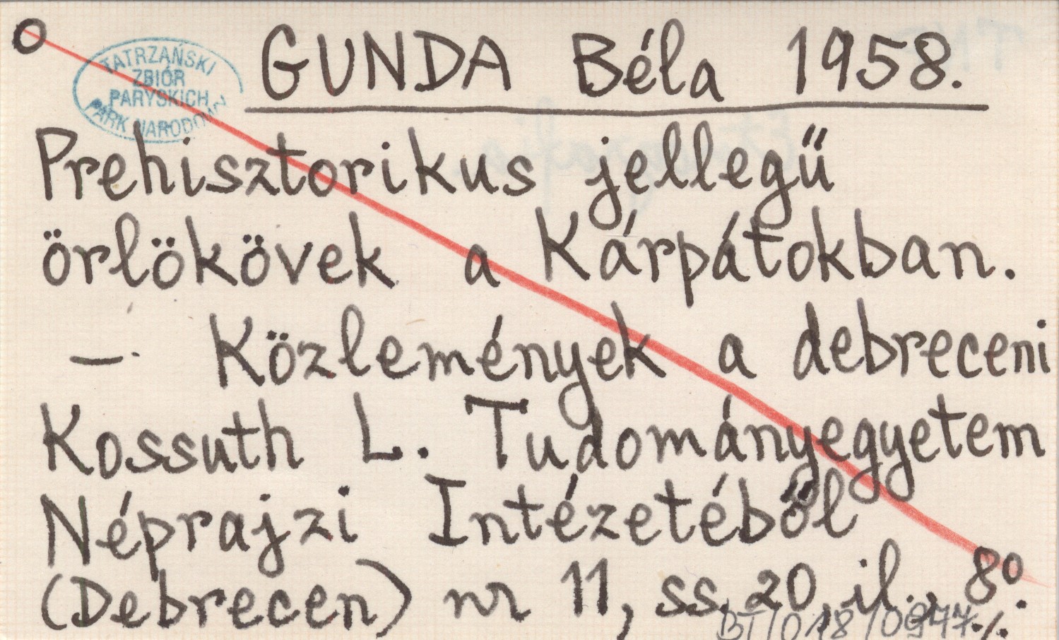 GUNDA Béla 1958 Prehisztorikus jellegű örlökövek a Kárpátokban.