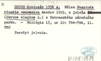 GUOTH Svetozár 1958 a Nález Nematoda rinadia caucasica Asadov 1955, u jeleňa (Cervus elaphus L.) z Tatranského národného parku.