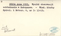 GURBA Anna 1956 O wielko¶ci ochładzania w Zakopanem i na Kasprowym Wierchu. (Wyniki prowizoryczne.).