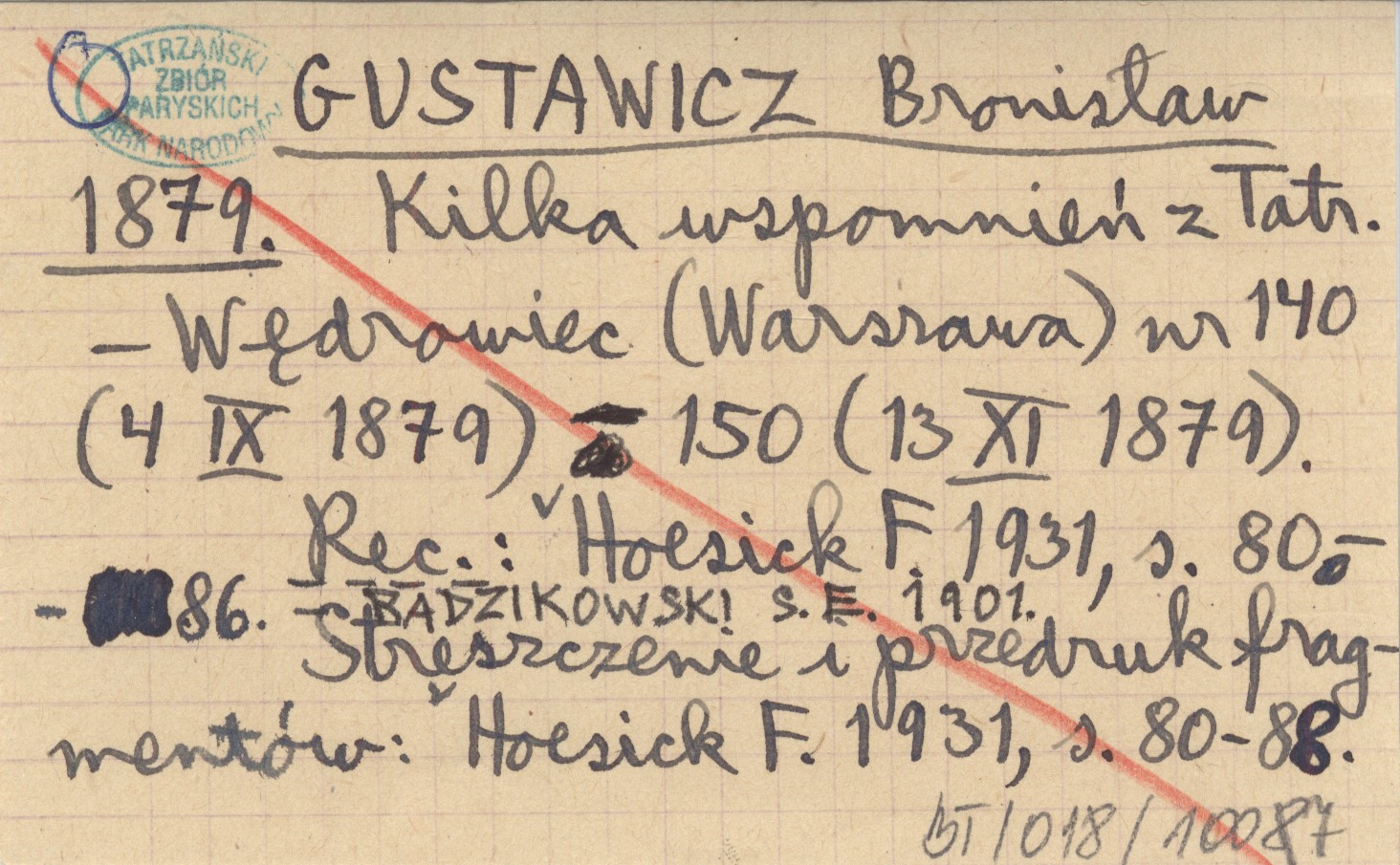 Wędrowiec (Warszawa) , 6, nr 140 (4 IX 1879): 151-155; nr 141: 168-171; nr 142: 182-184; nr 143: 197-198; nr 144: 220-222; nr 145: 228-229; nr 146: 252-254; nr 147: 263-264; nr 149: 293-294; nr 150 (13 XI 1879): 309-310. Streszczenie i przedruk fragmentów: HOESICK F. 1931, s. 80-88. REC: HOESICK F. 1931, s. 80-86 ; RADZIKOWSKI S. E. 1901 ;