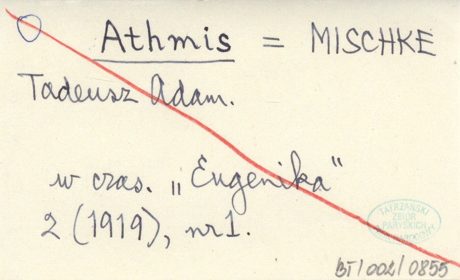 Athmis MISCHKE Tadeusz Adam Eugenika 2 (1919), nr 1.