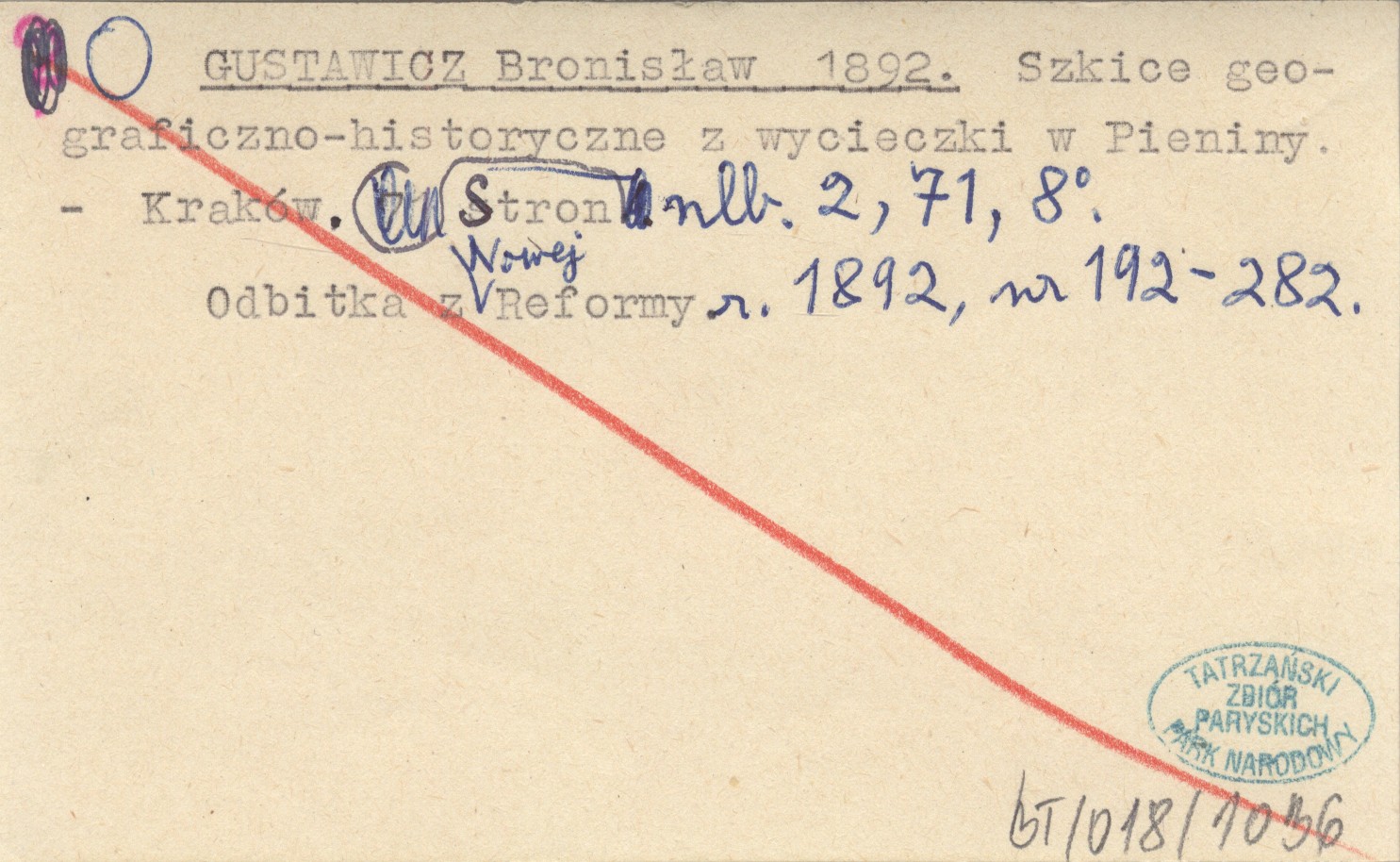 GUSTAWICZ Bronisław 1892 Szkice geograficzno-historyczne z wycieczki w Pieniny.