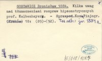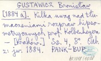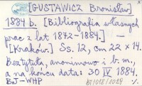 [GUSTAWICZ Bronisław] 1884 b [Bibliografia własnych prac z lat 1872-1884.].