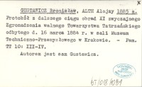 GUSTAWICZ Bronisław ALTH, Alojzy. ; 1885 a Protokół z dalszego ciągu obrad XI zwyczajnego Zgromadzenia walnego Towarzystwa Tatrzańskiego odbytego d. 16 marca 1884 r. w sali Muzeum Techniczno-Przemysłowego w Krakowie.