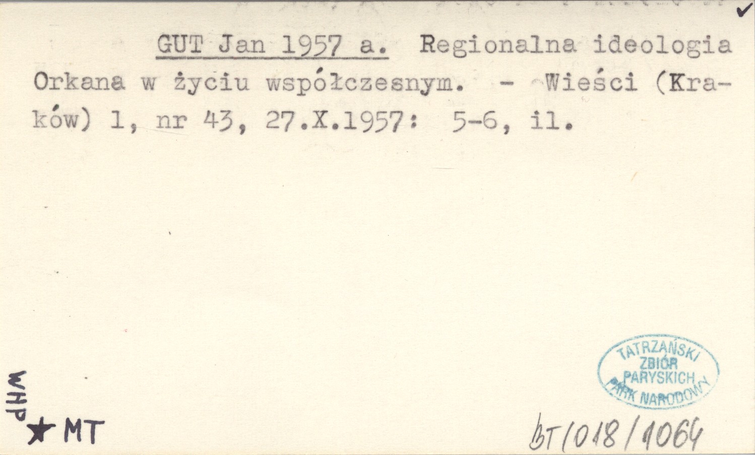 GUT Jan 1957 a Regionalna ideologia Orkana w życiu współczesnym.