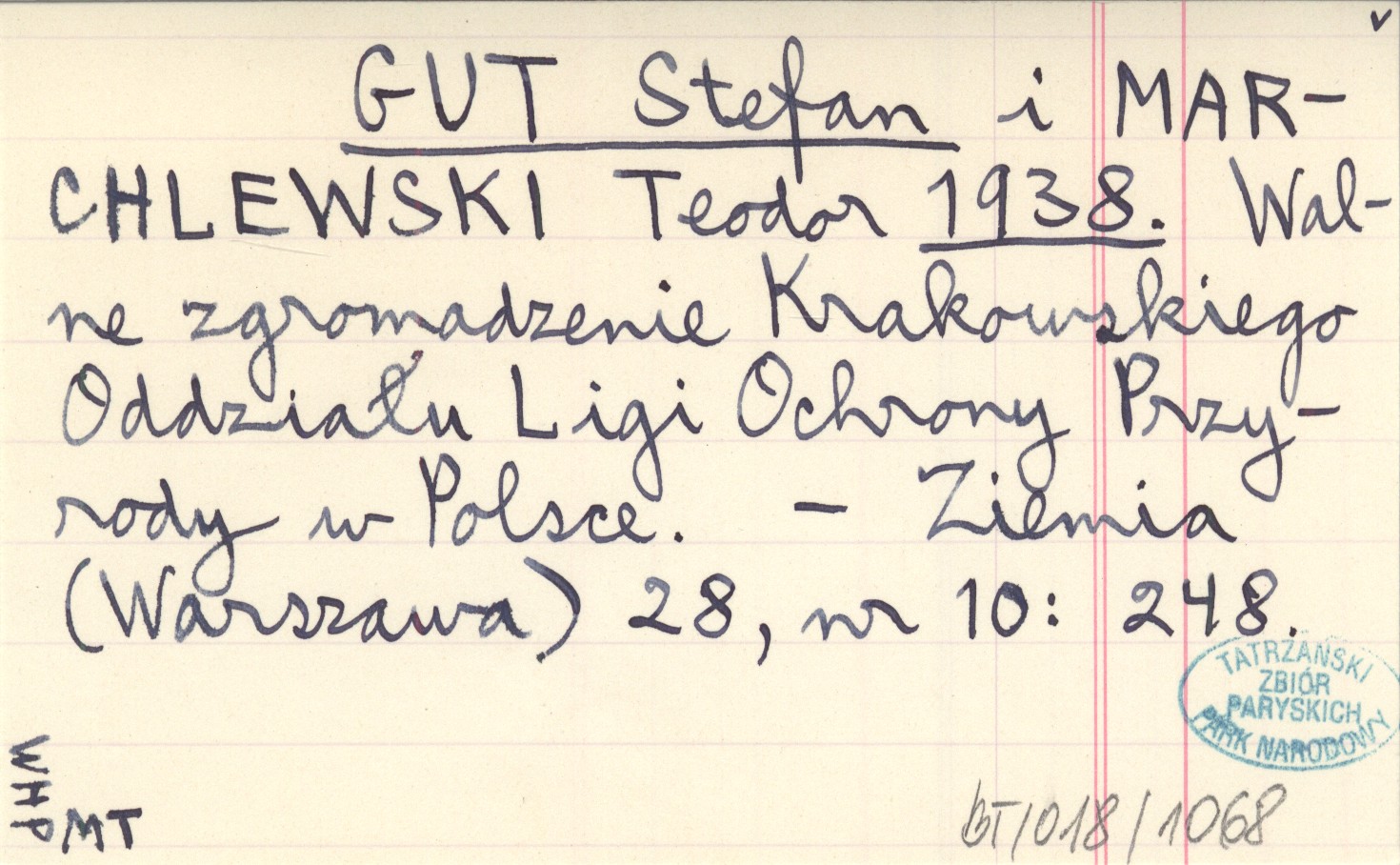 GUT Stefan MARCHLEWSKI, Teodor. ; 1938 Walne zgromadzenie Krakowskiego Oddziału Ligi Ochrony Przyrody w Polsce.