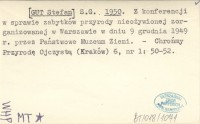 S. G. [GUT Stefan] 1950 Z konferencji w sprawie zabytków przyrody nieożywionej zorganizowanej w Warszawie w dniu 9 grudnia 1949 r. przez Państwowe Muzeum Ziemi.
