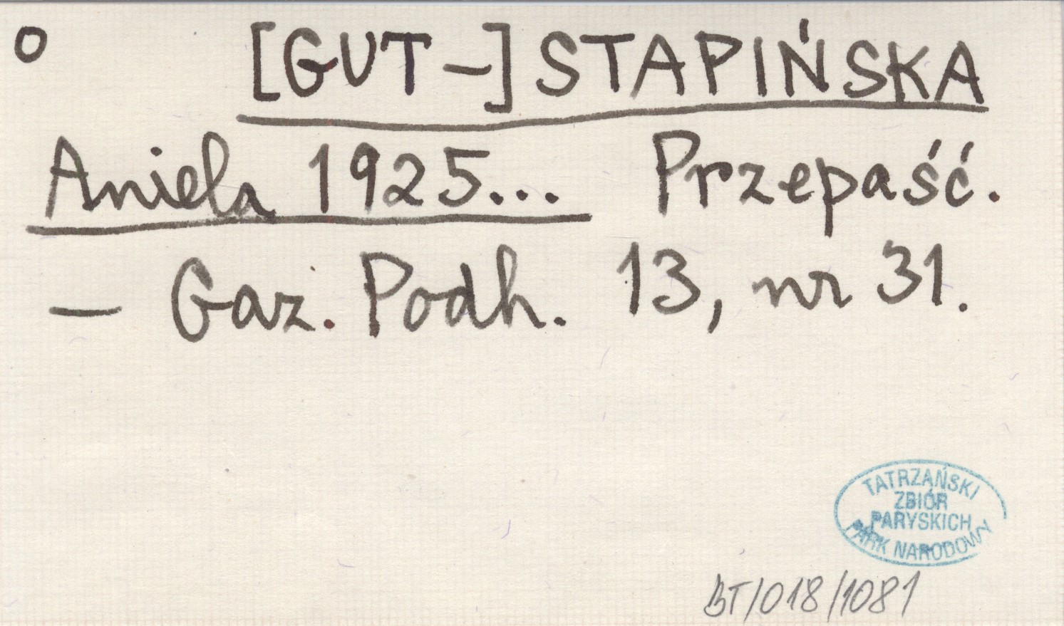 [GUT-] STAPIŃSKA Aniela