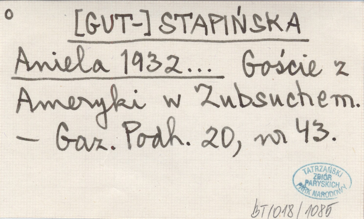 [GUT-] STAPIŃSKA Aniela 1932... Goście z Ameryki w Zubsuche.