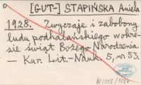 [GUT-] STAPIŃSKA Aniela 1928 Zwyczaje i zabobony ludu podhalańskiego w okresie świąt Bożego Narodzenia.