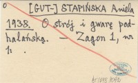 [GUT-] STAPIŃSKA Aniela 1938 O strój i gwarę podhalańską.