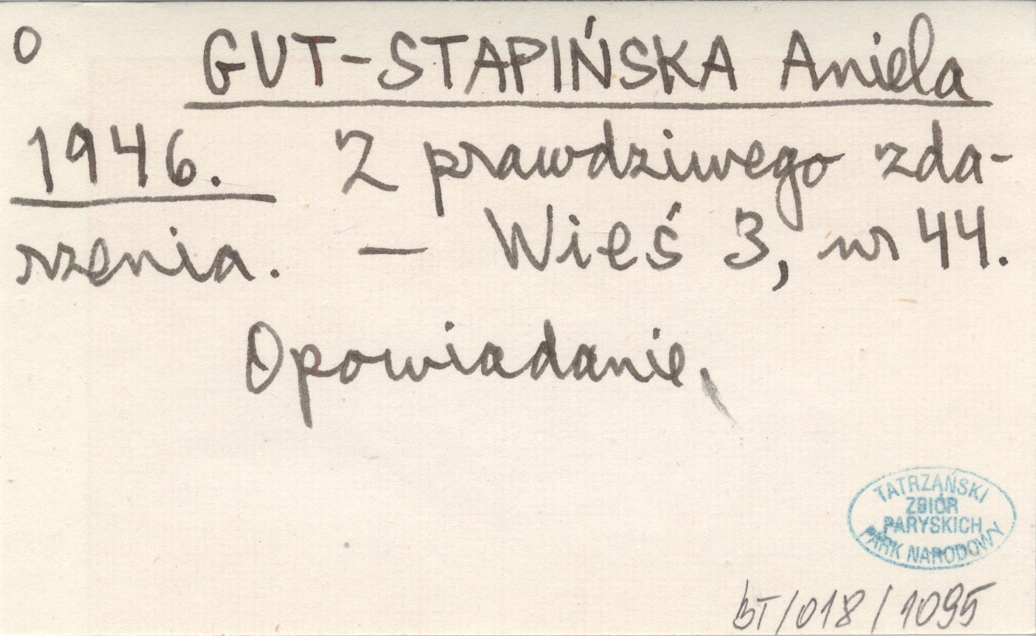 GUT-STAPIŃSKA Aniela 1946 Z prawdziwego zdarzenie.