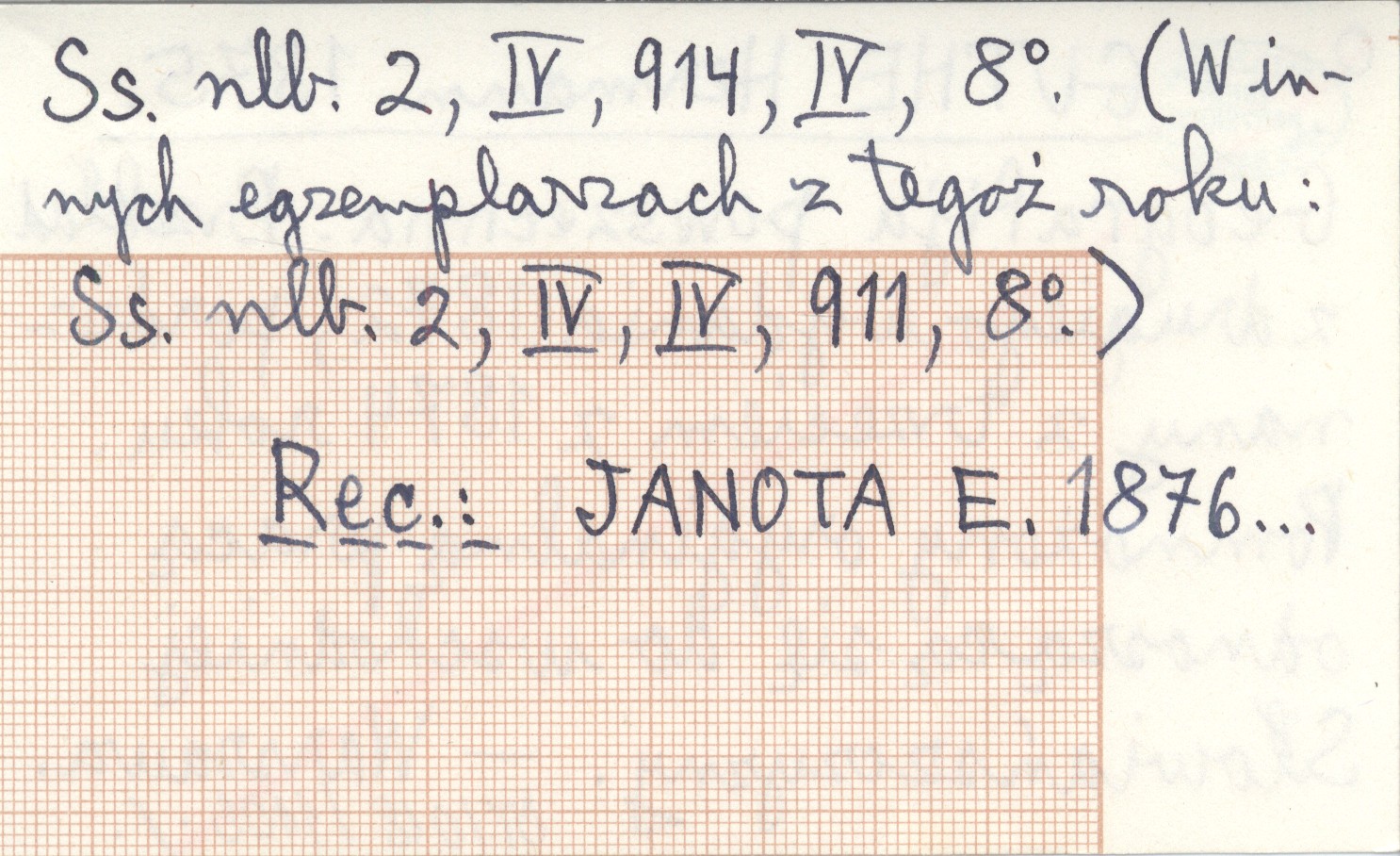 Warszawa , [2] s., IV, 914, IV, 8°. W innych egzemplarzach z tegoż roku: [2] s., IV, IV, 911, 8°.). REC: JANOTA E. 1876...